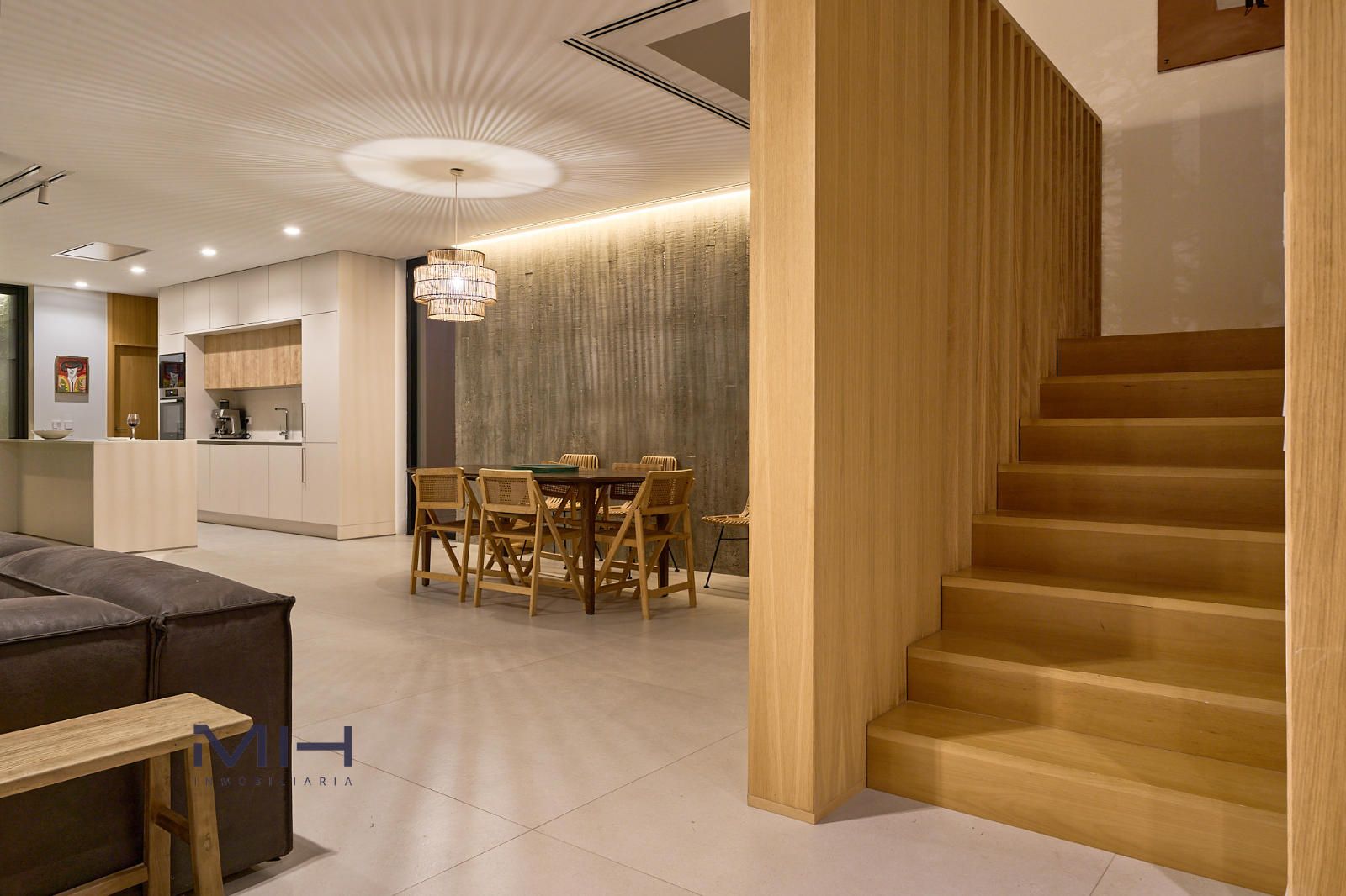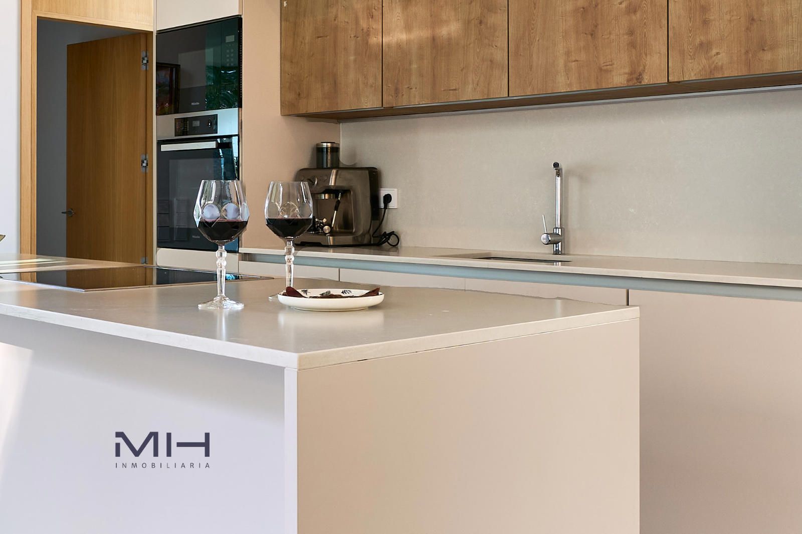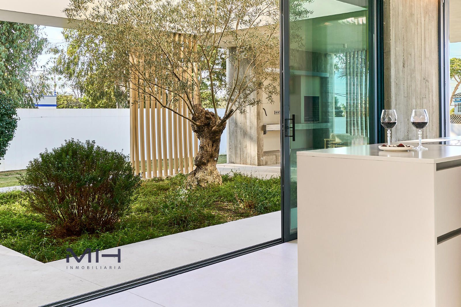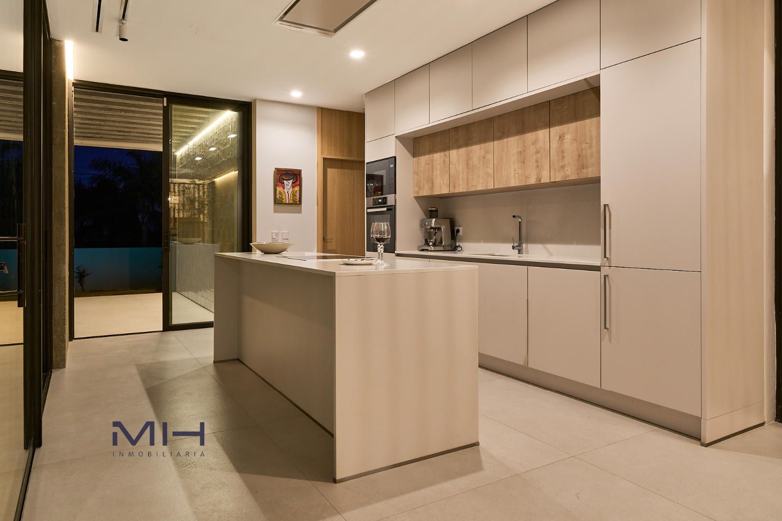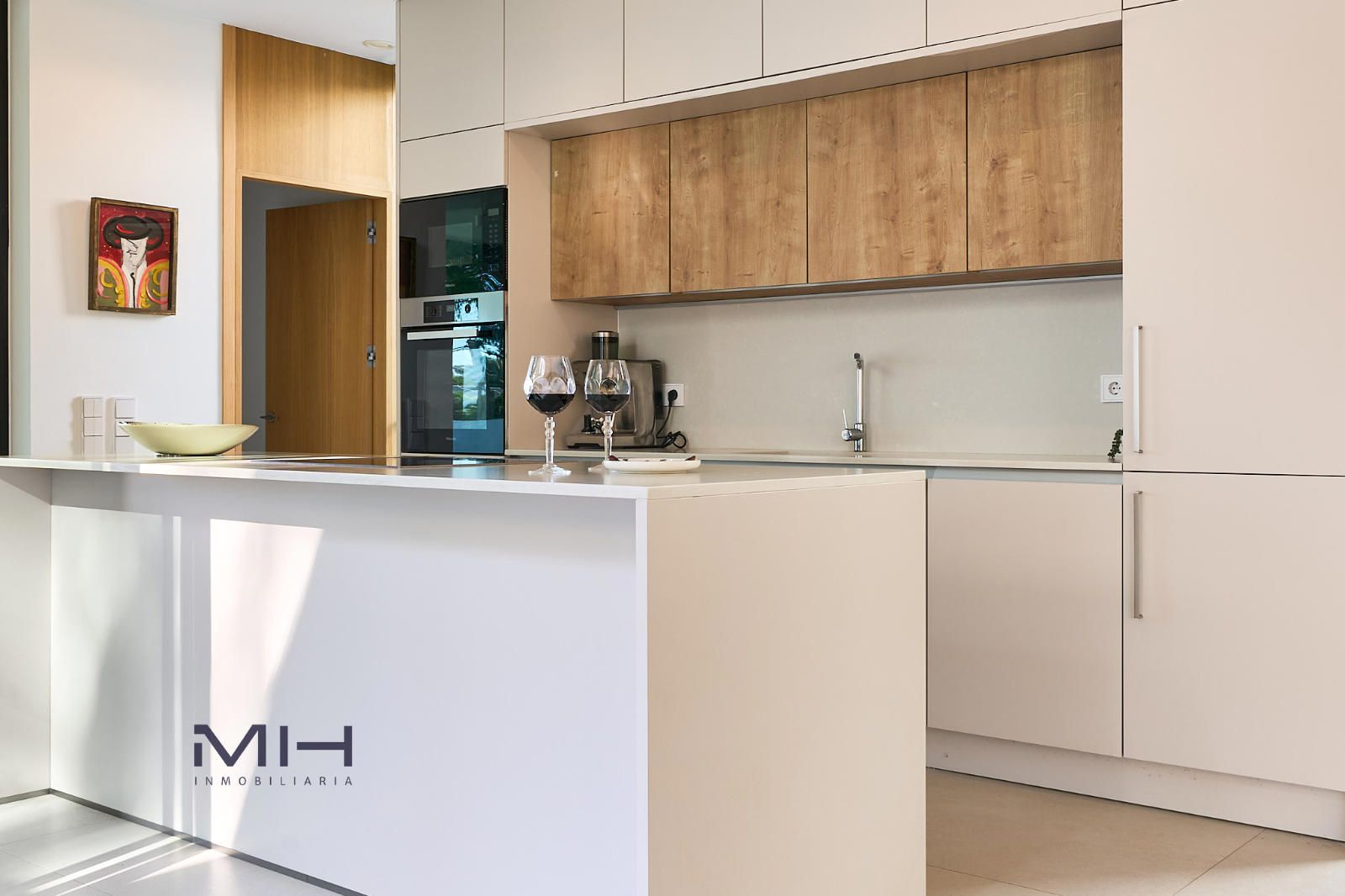 La cocina está equipada con electrodomésticos de alta gama y los grandes ventanales permiten que interior y exterior se fundan en un solo ambiente.