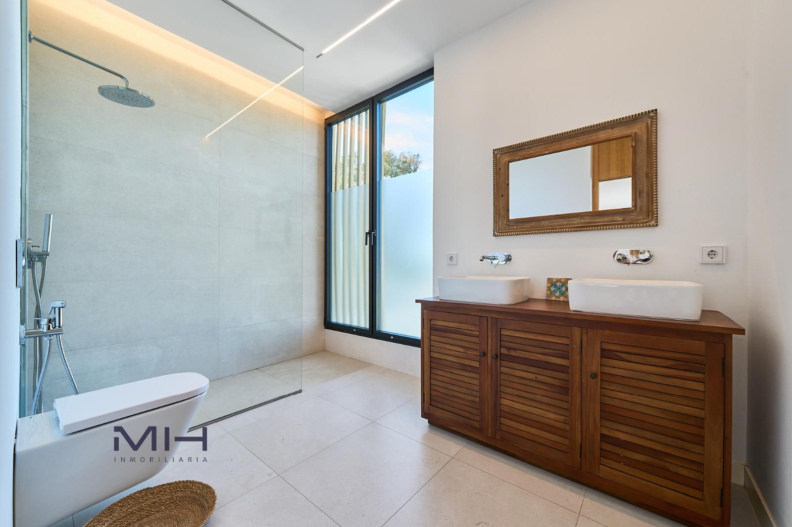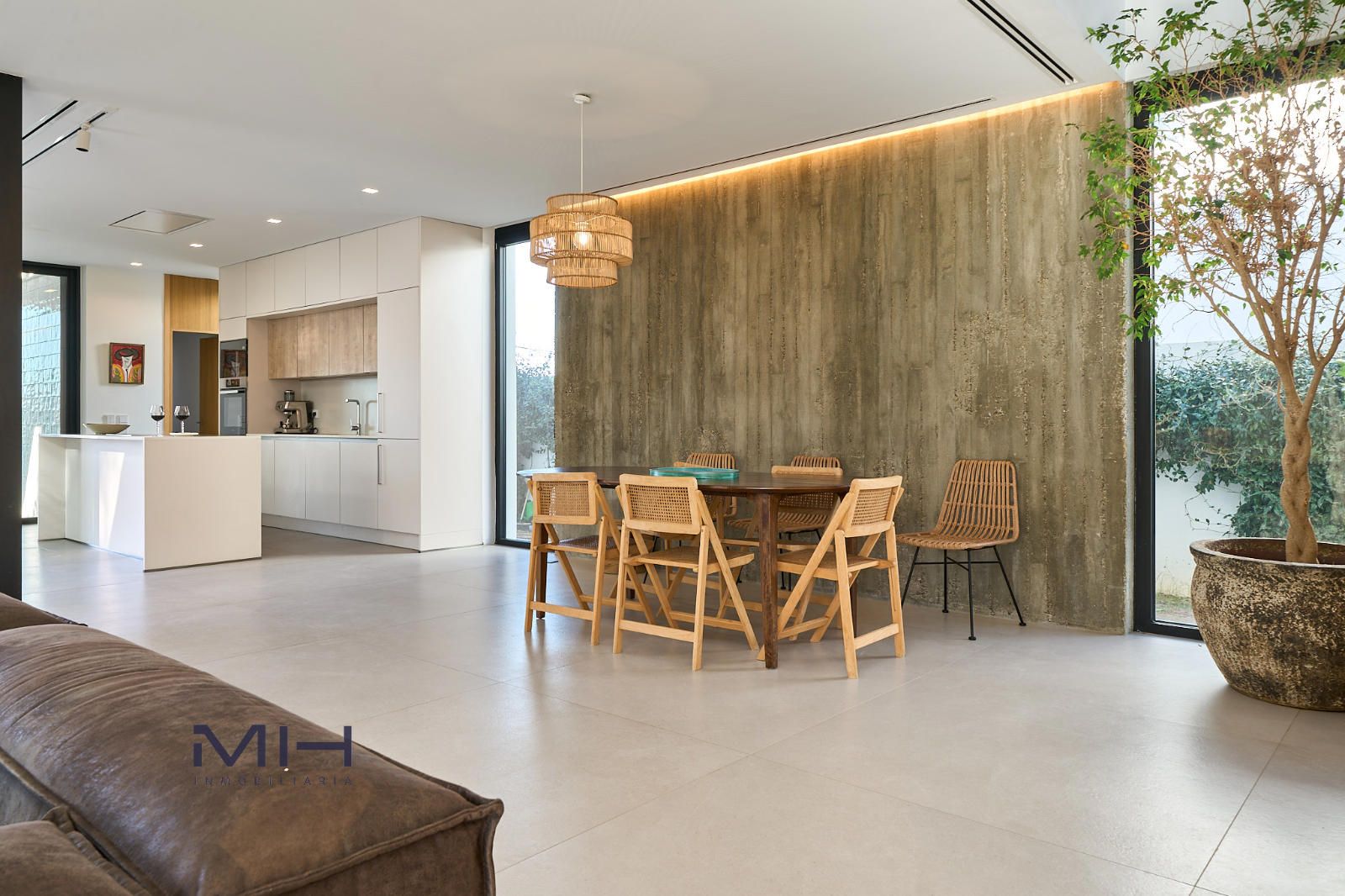 La planta principal se caracteriza por una distribución amplia y conectada: salón, comedor y cocina se integran en un único espacio que se abre por completo a un porche cubierto de unos 40 m², ideal para vivir dentro y fuera todo el año.