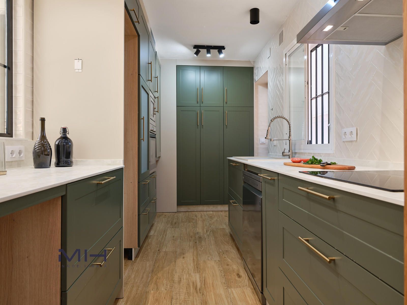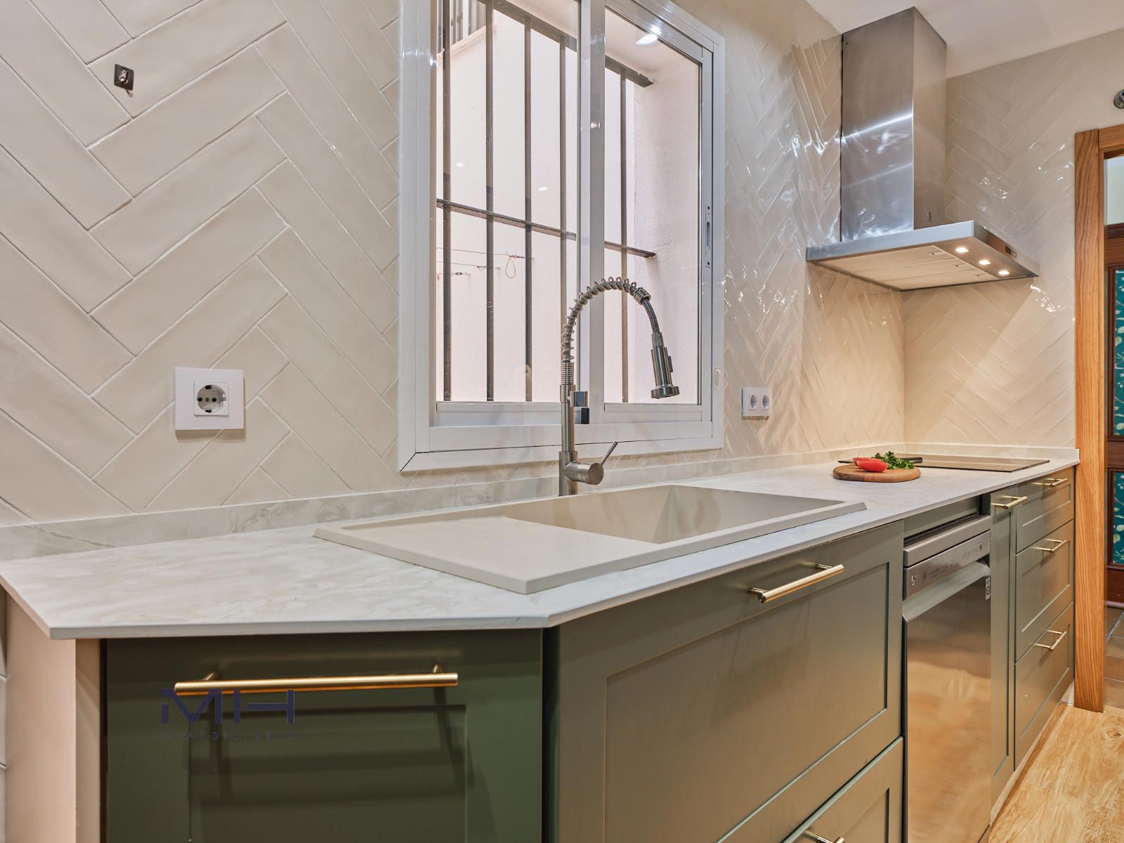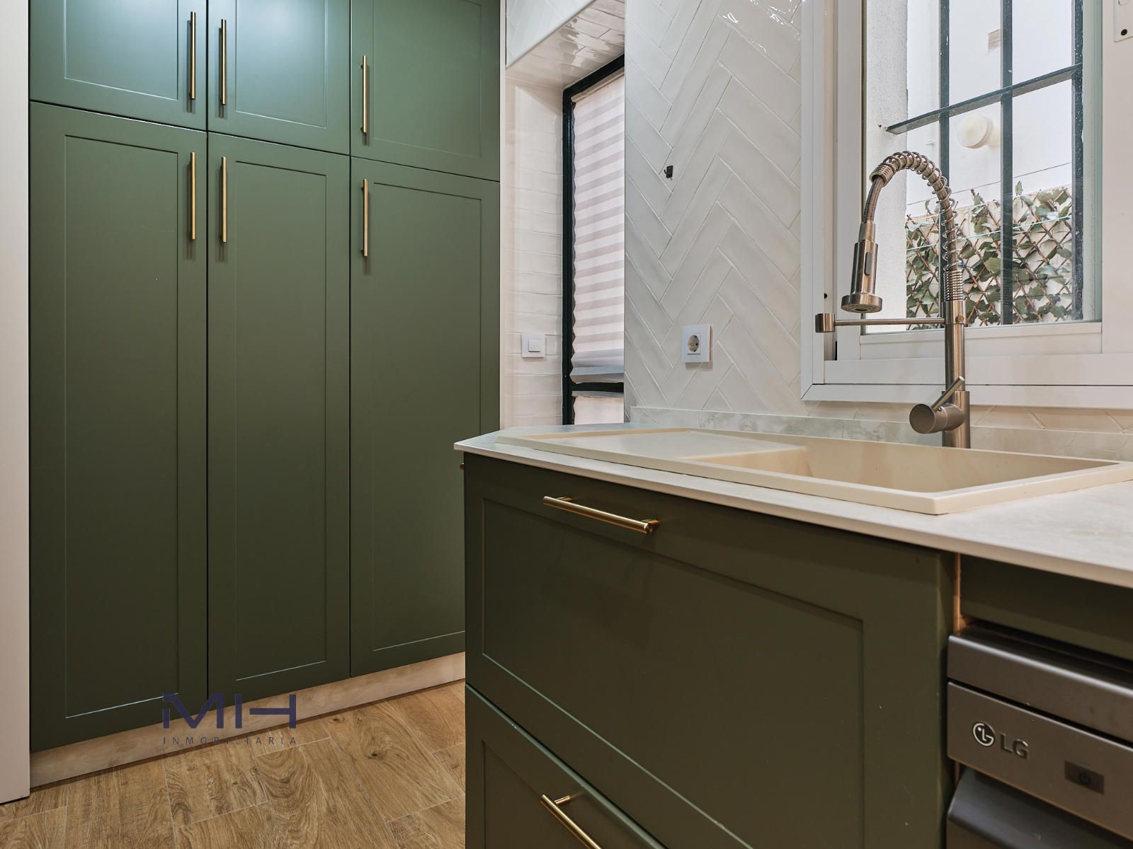 Cocina amplia, completamente reformada, moderna, funcional y muy bien aprovechada, con acceso a un patio trasero ideal como desahogo.