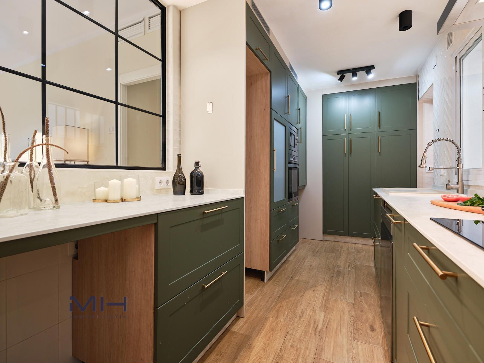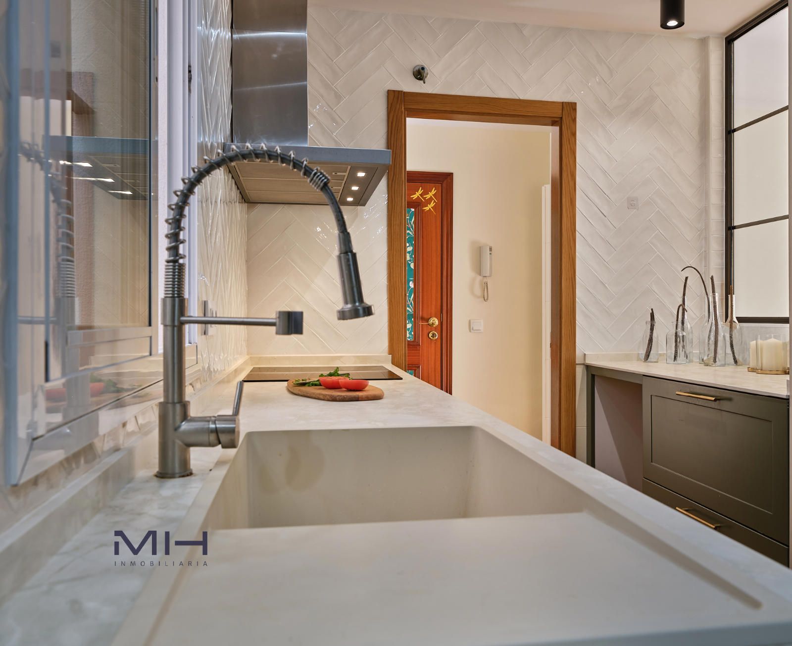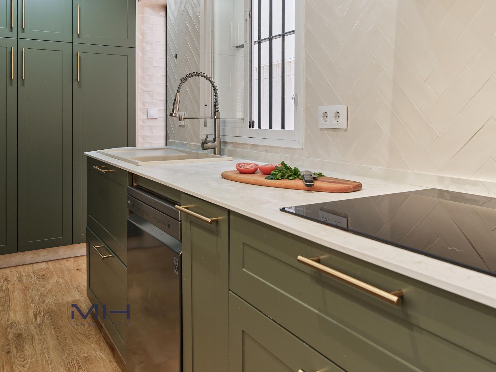 Cocina amplia, completamente reformada, moderna, funcional y muy bien aprovechada, con acceso a un patio trasero ideal como desahogo.