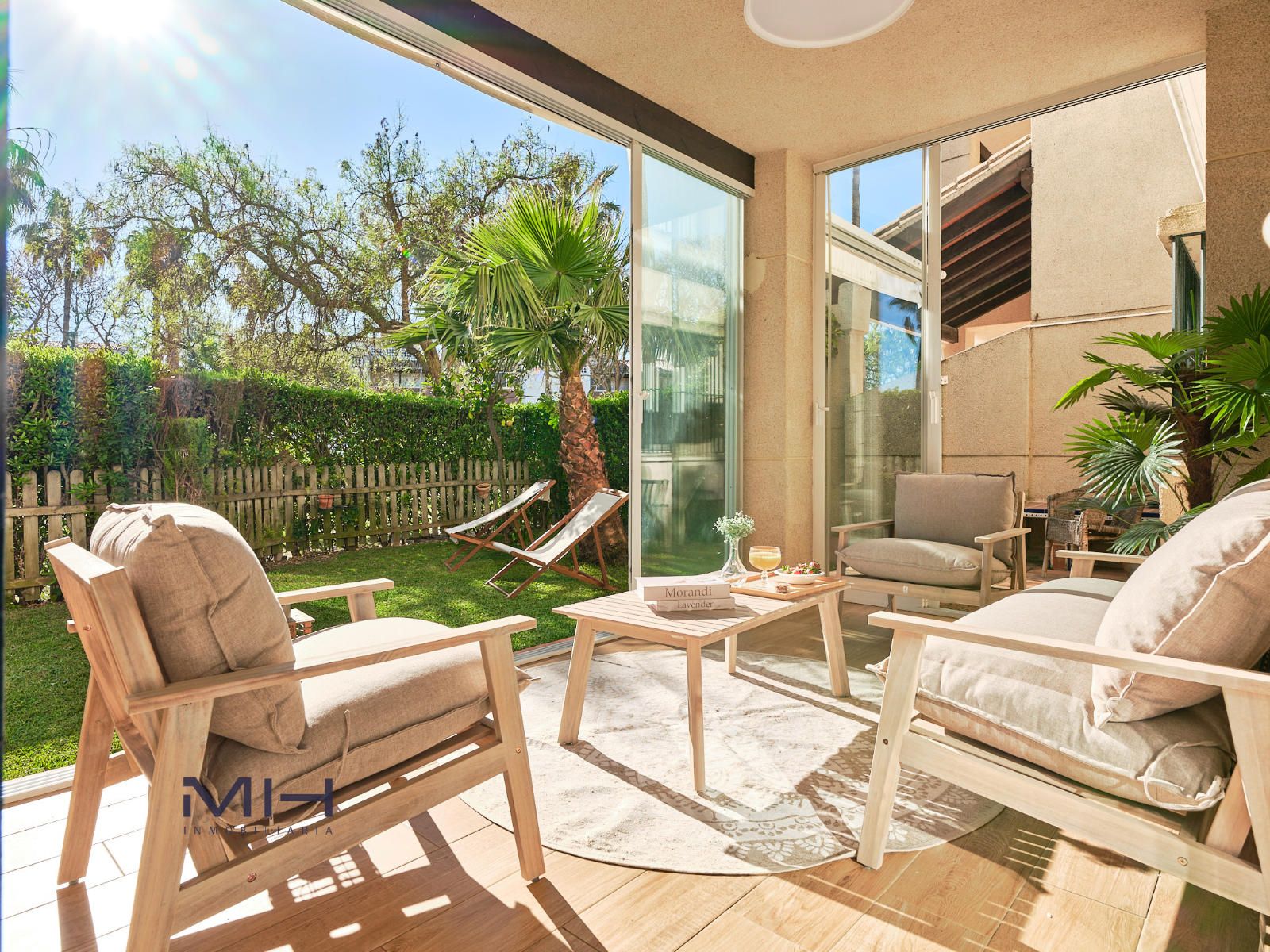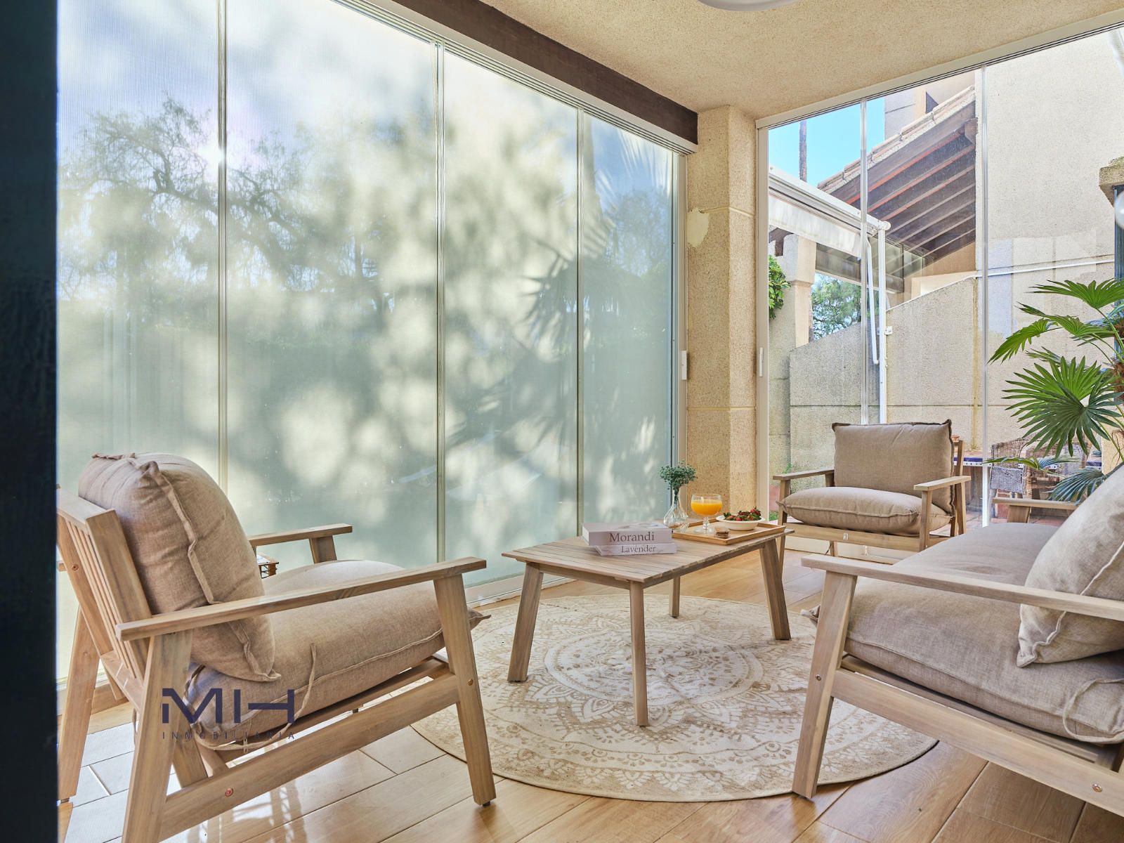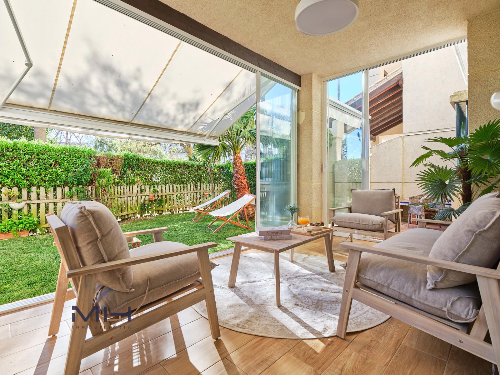 Salón comedor coqueto y muy acogedor con salida a un porche cerrado con cristaleras, en invierno no te querrás mover de ahí y en verano se pliegan y es una extensión más de la vivienda, donde podrá disfrutar del exterior.Desde el porche accedemos a un jardín con césped, donde el fresco y la sensación de estar en la naturaleza es auténtica. Desde el jar´din se accede a las zonas comunes, ideal para familias con niños o para su propia comodidad, entrar y salir a las zonas comunes sin tener que entrar por el portal.